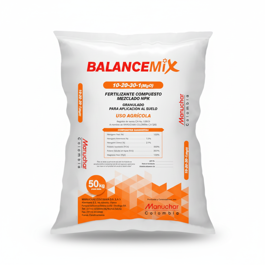 Abono edáfico 10-20-30-1 MgO formulado para nutrición óptima del cultivo. Proporciona nitrógeno, fósforo, potasio y magnesio en proporciones balanceadas. Su eficacia depende de factores como materia orgánica, pH, capacidad de intercambio catiónico y humedad del suelo. Aplicar según análisis edáfico para maximizar eficiencia agronómica y disponibilidad de nutrientes.