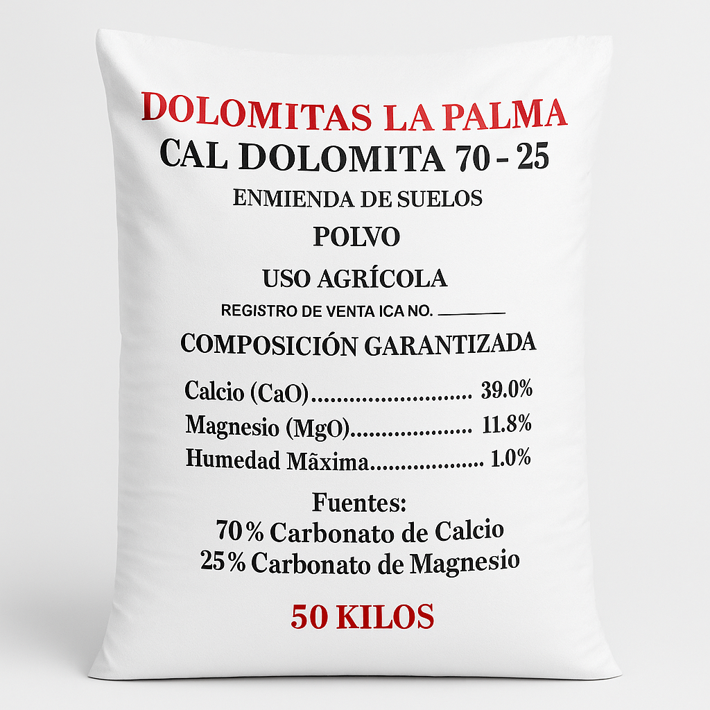 La Cal Dolomita es un enmienda mineral esencial para optimizar la salud del suelo agrícola. Rica en calcio y magnesio, corrige la acidez del terreno y mejora la disponibilidad de nutrientes para tus cultivos. Su aplicación fortalece la estructura del suelo, favorece la retención de agua y promueve el desarrollo radicular más profundo. Ideal para aumentar la productividad en diferentes tipos de siembras, la Cal Dolomita de Río Claro La Palma garantiza calidad premium con origen verificado. Invierte en suelos más fértiles y cosechas más abundantes.