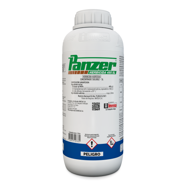 PANZER 480 SL es un herbicida no selectivo de aplicación en post emergencia y acción sistémica, además es recomendado para el control de la mayoría de las malezas anuales y perennes. Este producto que penetra por las hojas y se mueve dentro de las partes aéreas y subterráneas de las plantas causa la muerte total de las malezas entre los 7 a 15 días después del tratamiento. Después de su aplicación Panzer 480SL se inactiva en el suelo, por eso no deja residuos que afecten las siembras posteriores. Para usos y dosis revisa la ficha técnica.